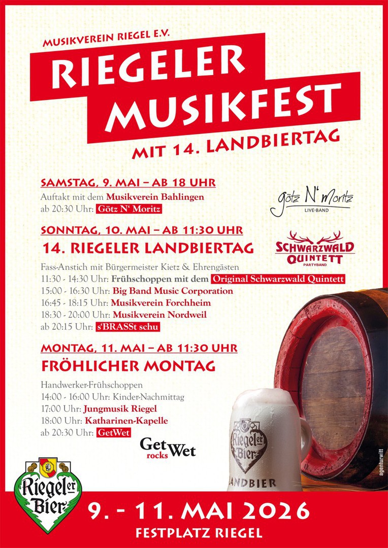 Schön, dass Sie den Weg auf unsere Internetpräsenz gefunden haben. Auf den folgenden Seiten finden Sie einige Informationen rund um den Musikverein Riegel. Erfahren Sie mehr über uns, unsere Veranstaltungen & Konzerte oder stöbern Sie in unserer Bildergalerie.