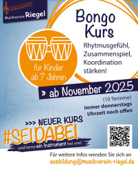 Wir proben jeden Freitag von 18.00 - 19.30 Uhr in der Römerhalle in Riegel. Schau doch einfach mal vorbei, hör uns zu oder probiere Intrumente aus!